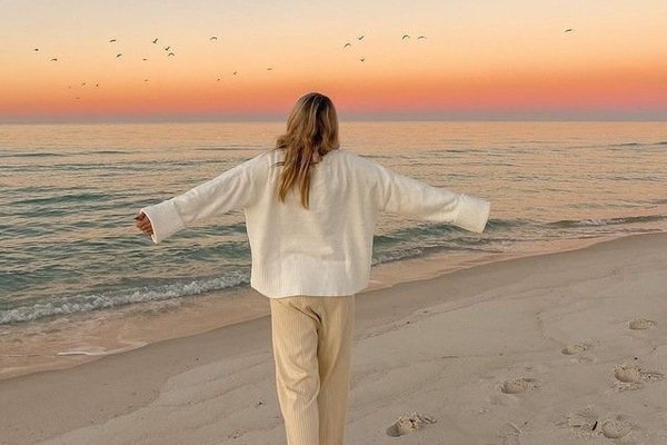 tengerpart fehér homokkal van borítva. A jógaórák által kisimultan kezdődhetett a